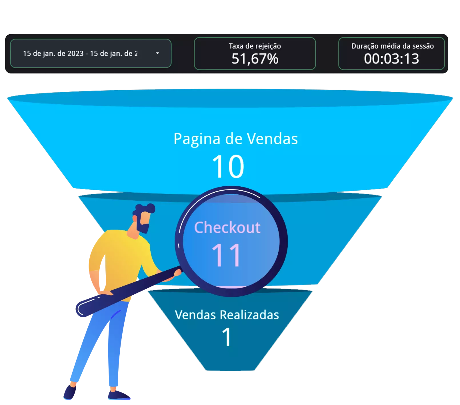 No Dashboard Alta Performance, você pode descobrir quantas pessoas visitaram sua página, quantas clicaram no checkout e quantas compraram o seu produto!